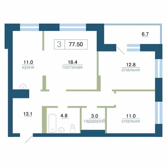 Площадь от 77.5 м2