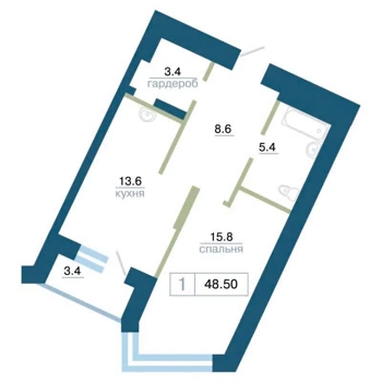 Площадь от 48.5 м2