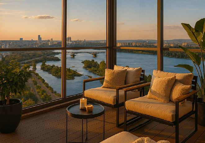 Здесь много видовых квартир с видом на Енисей и горы