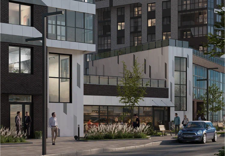 Удобное место для бизнеса. Первые этажи займут коммерческие помещения: магазины и заведения сферы услуг, а квартиры начнутся с третьего этажа. Такое решение сохранит уединенность дома и обеспечит жителей всем необходимым.