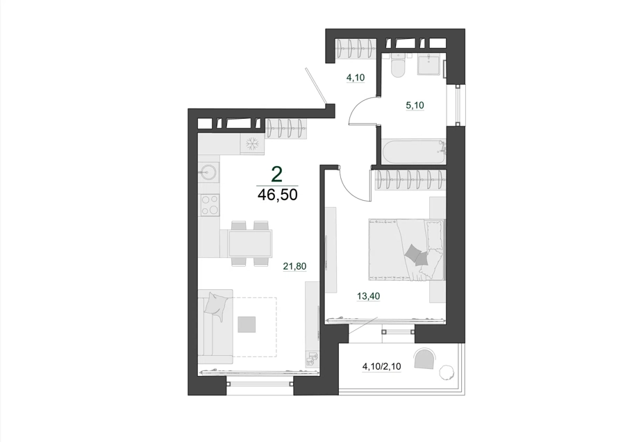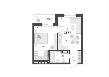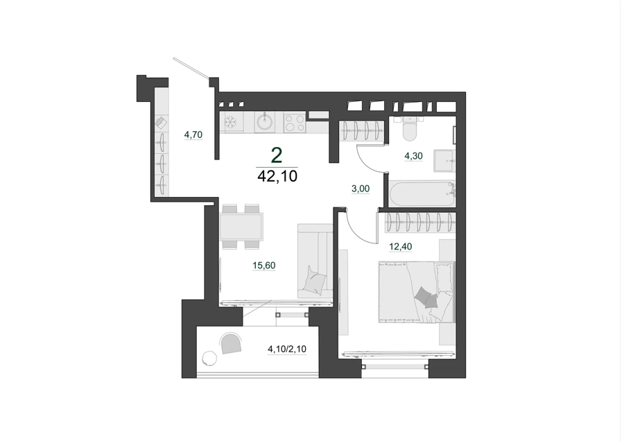 Площадь от 42.1 м2