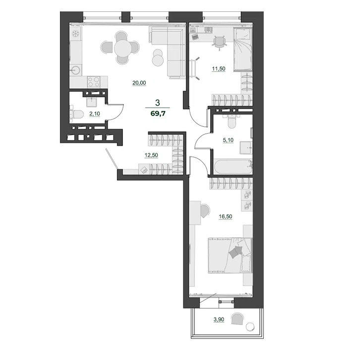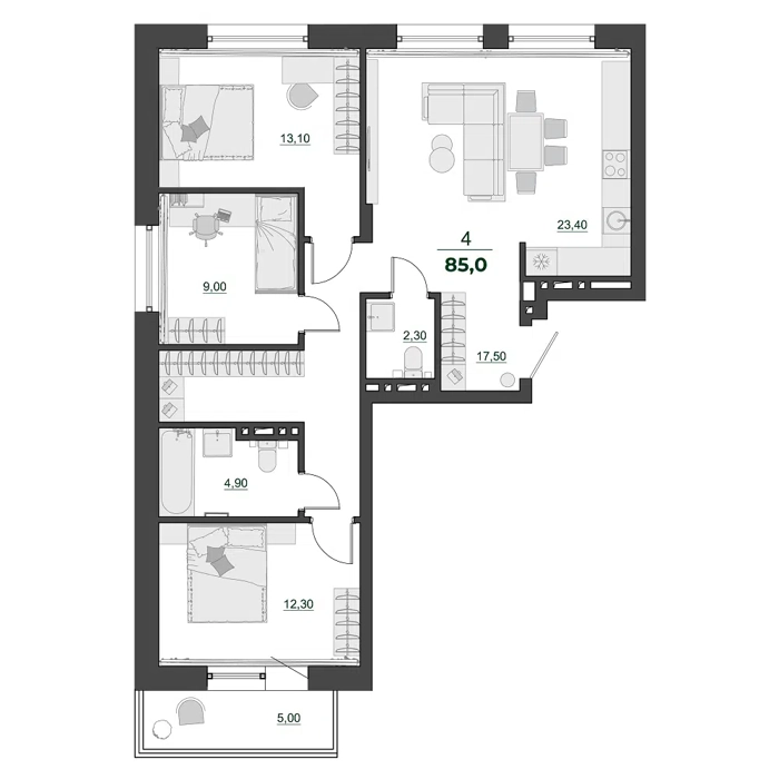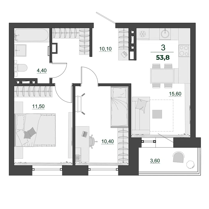 Здесь каждый квадратный метр создан с заботой о настоящем семейном комфорте. Просторные планировочные решения позволят вам дышать свободно – квартира станет уютной крепостью для вашей семьи