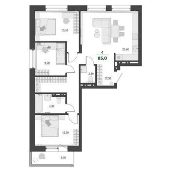 Площадь от 85 м2