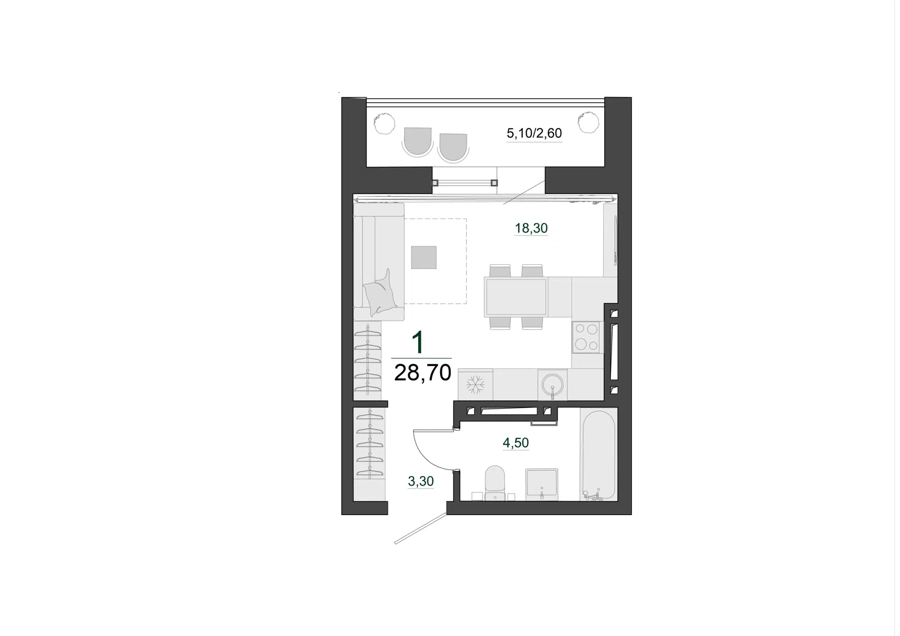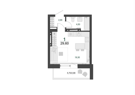 Площадь от 28.7 м2