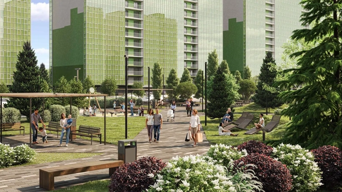Роскошная аллея с ландшафтным дизайном, шезлонгами и зонами отдыха в тени деревьев подарят приятные минуты отдыха от городской суеты каждому жителю