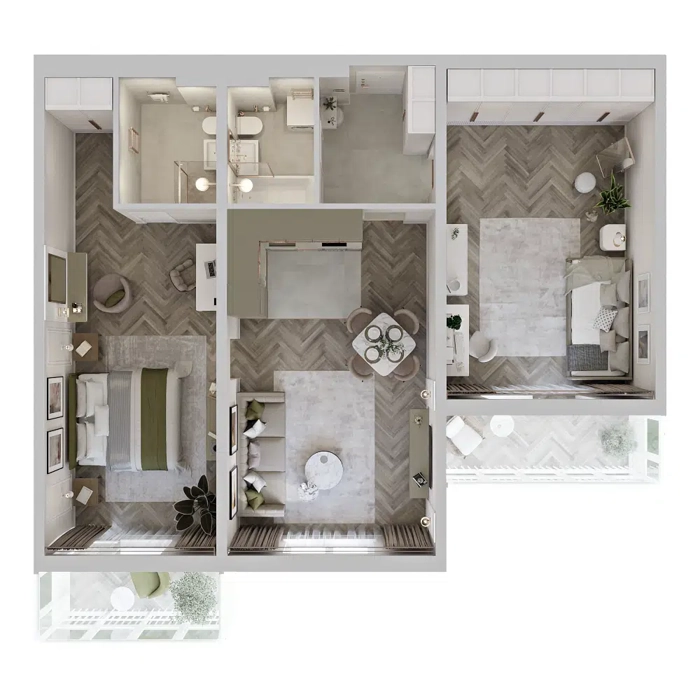 Площадь от 60.7 м2